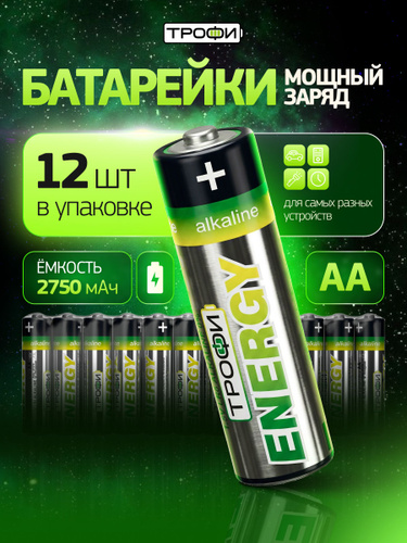 Батарейки пальчиковые АА Трофи LR6-12S ENERGY Alkaline, 12 штук