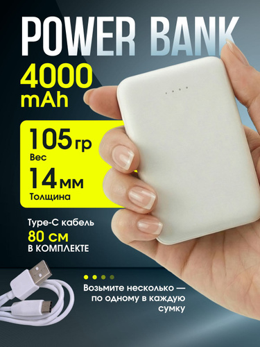 Повербанк маленький мини легкий 4000 mAh - 1 шт