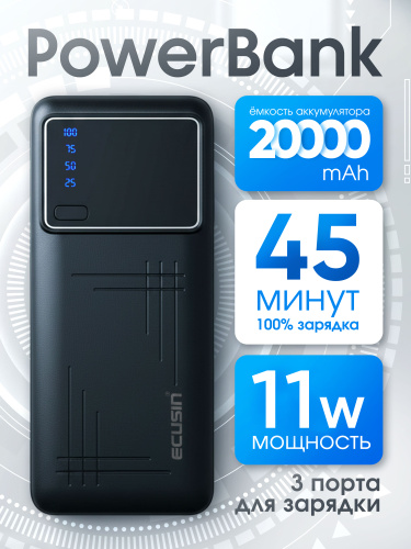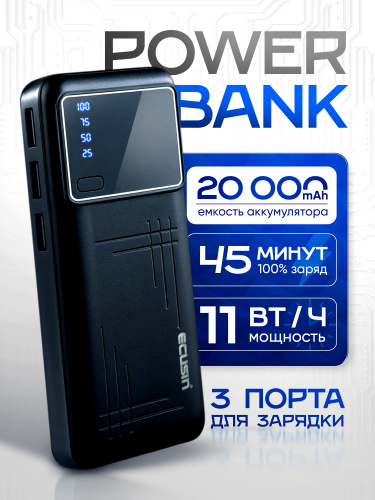 Power Bank 20000 мАч, Повербанк 20000mah / Черный / Внешний аккумулятор