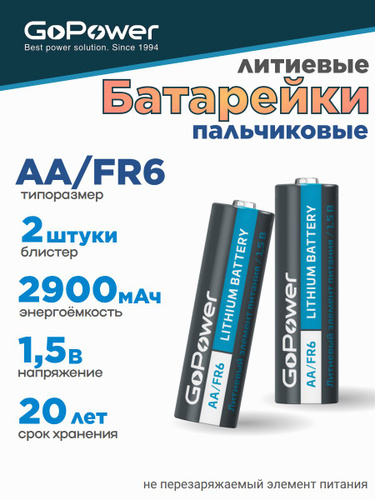 Батарейки GoPower FR6 AA Литиевые 1.5V - 2 шт.