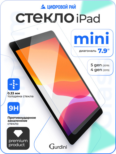 Стекло защитное 0.33 мм на айпад мини 4 / 5 поколения 7.9" / ipad mini 4 / 5