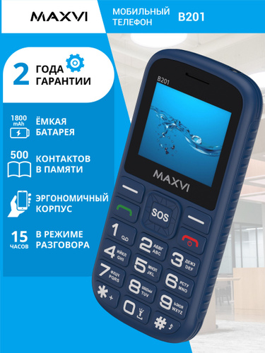 Телефон кнопочный с увеличенным шрифтом и кнопкой SOS Maxvi B201 синий