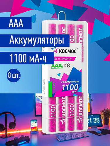 Аккумуляторные батарейки ААА КОСМОС 1100 mAh, мизинчиковые 8 шт.