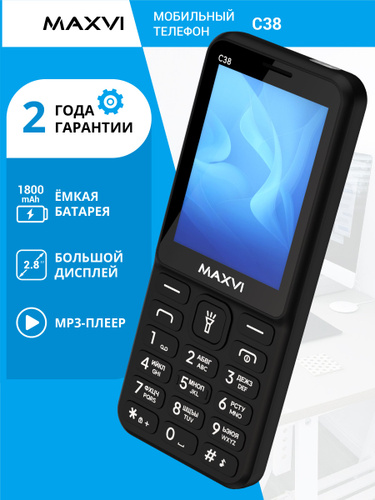 Телефон кнопочный с камерой и фонариком Maxvi C38 черный