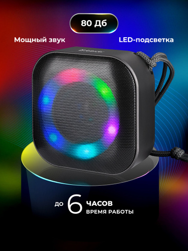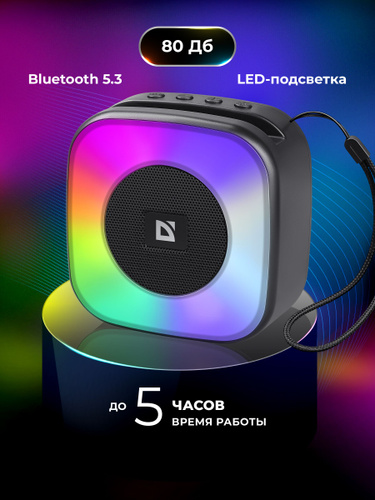 Колонка блютуз беспроводная Defender Энджой 10 80 Дб, черный, bluetooth, с подсветкой, Soft Touch, Type C