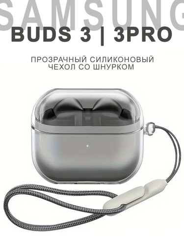 Чехол для наушников Samsung Galaxy Buds 3 / 3 Pro, силиконовый со шнурком, прозрачный