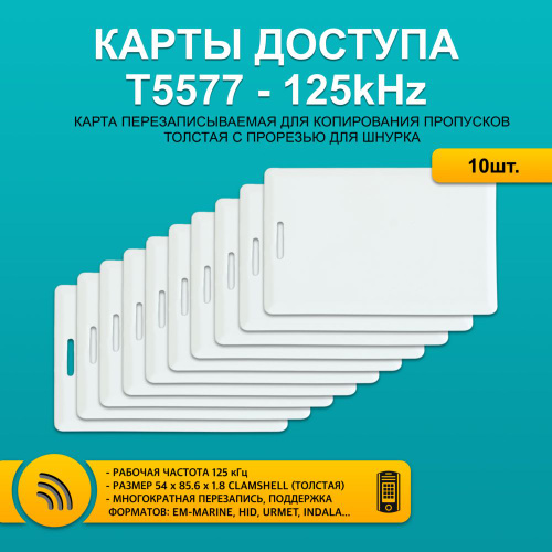 Карта доступа толстая T5577 CLAMSHELL CARD (10шт) с прорезью, перезаписываемая карта-заготовка. Частота 125 кГц. Для копирования Em-marine (болванка-пустышка).