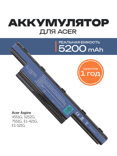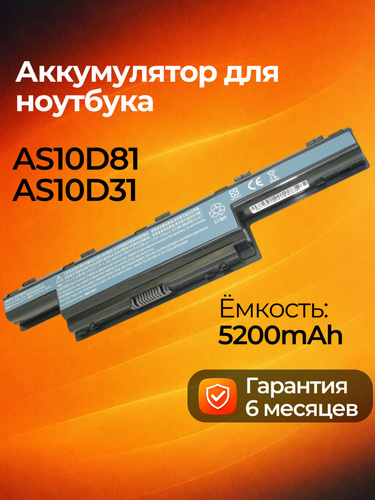 Azerty Аккумулятор для ноутбука Acer 5200 мАч, (AS10D31, AS10D3E, AS10D41, AS10D51, AS10D56, AS10D61, AS10D71, AS10D75, BT.00405.013, BT.00603.111, BT.00604.049, BT.00606.008, BT.00607.125, BT.00607.127, LC.BTP00.123, LC.BTP00.127, 3ICR19/66-2, 934T2078F, AS10D5E, AS10D61, AS10D73, AS10D7E, AS10D81, AS10G3E, AS10D73, AS10D81, 31CR19/65-2, 31CR19/652, 31CR19/66-2, AK.006BT.075, AK.006BT.080, BT.00603.117, BT.00603.124, BT.00605.062, BT.00605.065, BT.00607.126, BT.00607.130, LNGE-4741)