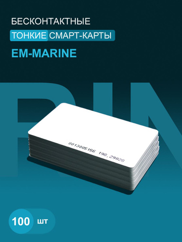 Карта доступа тонкая Em-marine (100шт). Карта с кодом (идентификатор). Частота 125 КГц. Вносится в контроллер домофона/турникета. Подходит под печать.