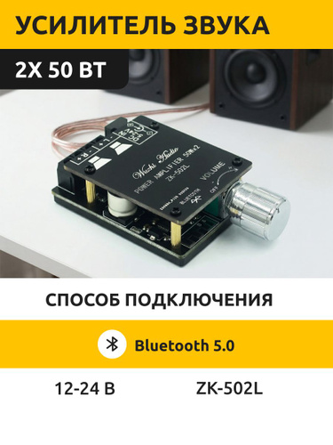 Усилитель звука ZK-502L (50+50 Вт) Bluetooth 5.0. Аудио усилитель 100W
