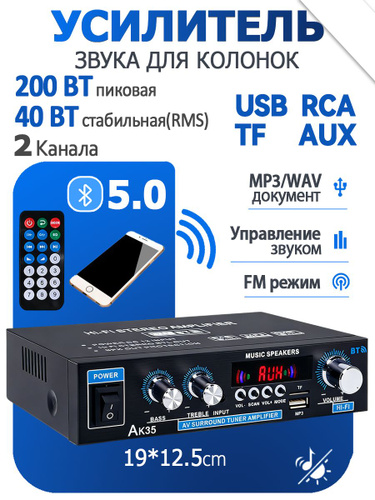 Аудио усилитель звука для колонок ak35 усилитель звука 2.1 двухканальный с Bluetooth 5.0 3.5mm/FM/TF/RCA/USB/ AK35,20Вт-200Вт