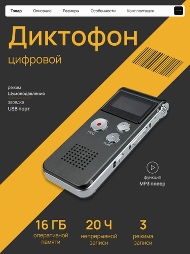 Цифровой диктофон с дисплеем для записи голоса и разговоров, набор аксессуаров в комплекте, объём памяти 16 GB