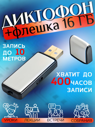 Цифровой аудио мини диктофон для записи голоса и разговоров + USB флешка 8 ГБ