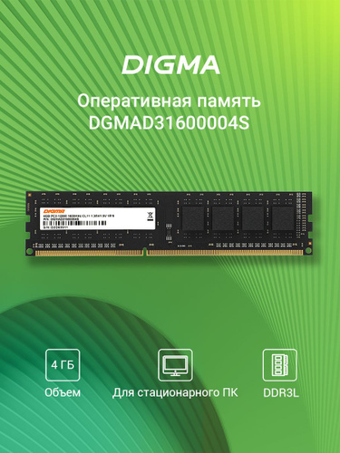 Digma Оперативная память PC3-12800 CL11 DIMM 240-pin 1.35В 1x4 ГБ (DGMAD31600004S)