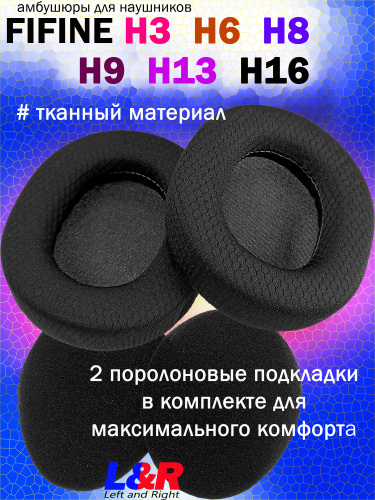 Амбушюры для наушников Fifine H3, H6, H8, H9, H13, H16 тканные, черные, с эффектом памяти + 2 поролоновые подкладки толщиной 5 мм