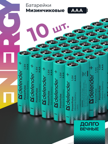 Батарейки мизинчиковые батарейки ааа алкалиновые щелочные AAA Defender LR03-10BL 10 штук в упаковке