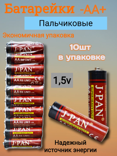 J.pan Батарейка AA, R (солевой) тип, 1,5 В, 10 шт