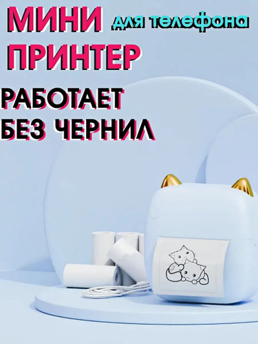 Компактный мини принтер с ночником /термопринтер (голубой)