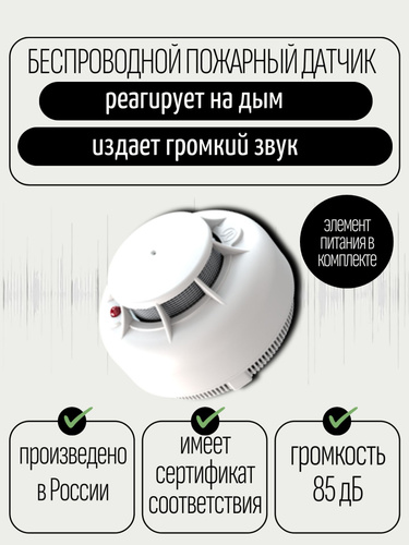 Датчик дыма на батарейке "Сверчок" (Извещатель пожарный дымовой автономный) белый