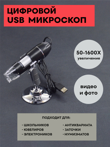 Цифровой USB микроскоп / увеличение 50х-1600х / электронный микроскоп