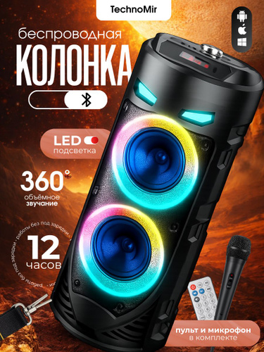 Колонка портативная беспроводная блютуз, караоке с микрофоном