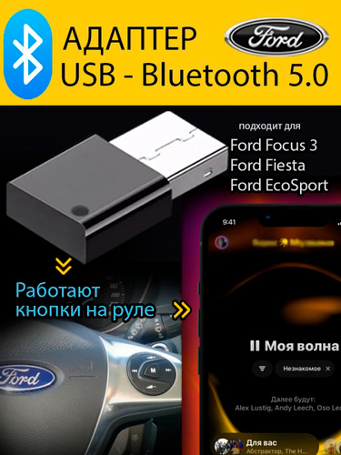 Bluetooth AUX для Ford Focus 3, Kuga, Ecosport через USB. Работает управление кнопками на руле.