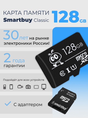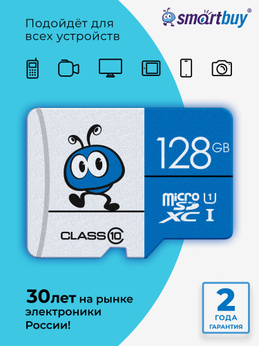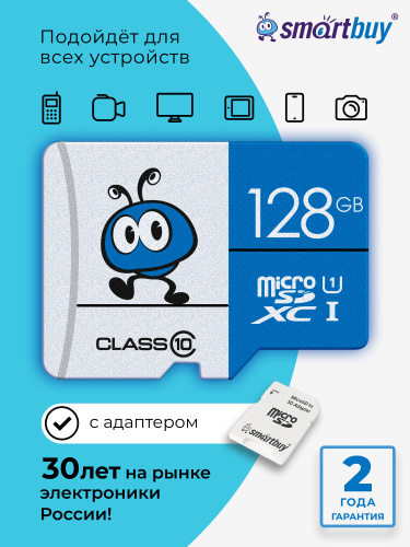Карта памяти microSD 128 ГБ Smartbuy Class 10 UHS-1