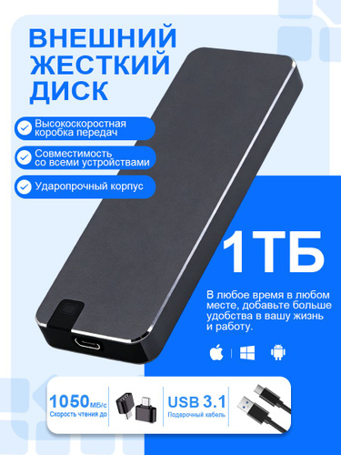 1 ТБ Внешний жесткий диск (1TB), Металл, черно-серый