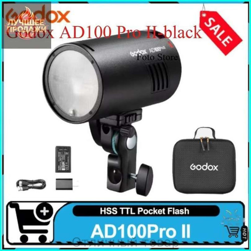Bспышка Godox AD100 Pro II standard Flash Strobe, 100Ws 3300mAh 1.5s Recycling Time,HSS TTL 1/8000s 490 Full-Power Flashes 2.4G Wireless,фотосъемки на открытом воздухе