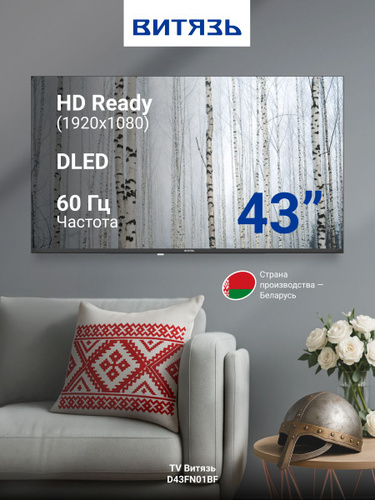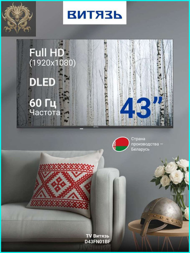 Витязь Телевизор D43FN01BF, с пультом ДУ, HD, DLED, time shift, 43″ Full HD, черный