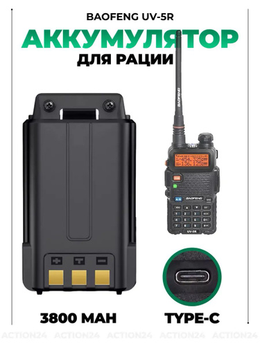 Аккумулятор для рации Baofeng UV-5R, UV-5RA 3800мАч Type-C