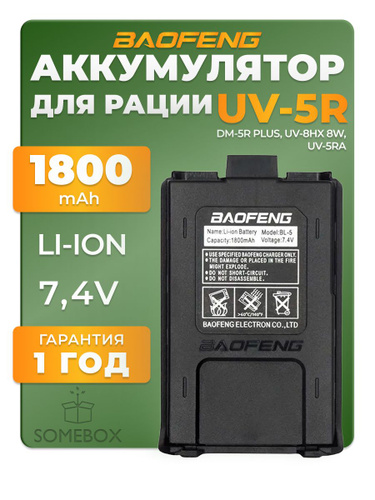 Аккумулятор для раций Baofeng UV-5R, DM-5R 1800 мАч, Цвет Черный