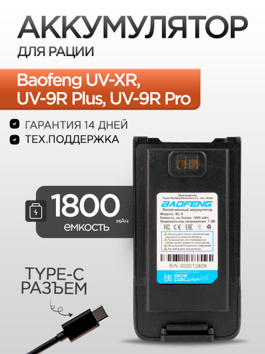Аккумулятор для рации Baofeng UV-9R Plus 2200 мАч