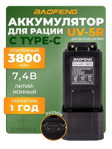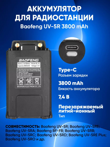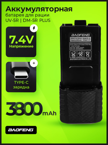Аккумулятор для рации Baofeng UV-5R (BL-5 3800 мА*ч), Type-C