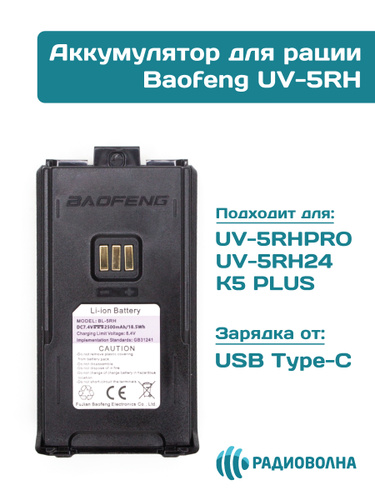 Аккумулятор для Рации Baofeng UV-5RH (BL-5RH) зарядка от USB Type-C