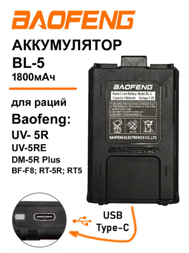 Аккумулятор BL-5 1800 мАч Type-C Baofeng UV-5R