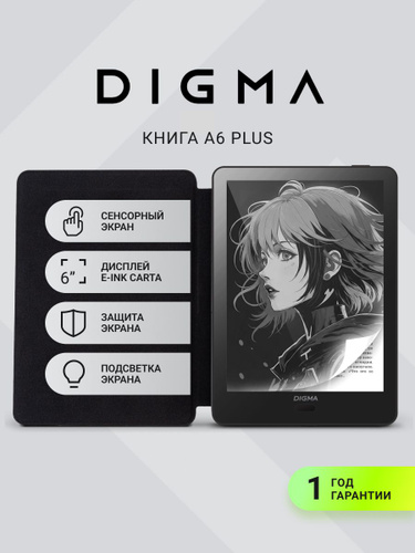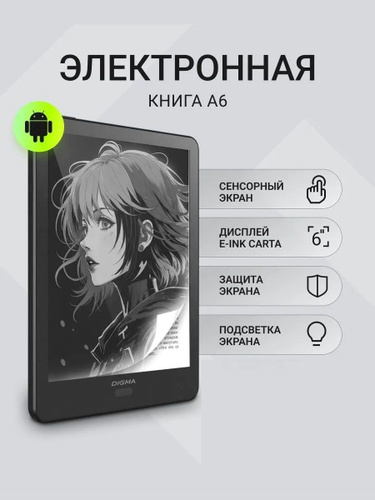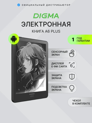 Электронная книга с чехлом Digma A6 PLUS, E-Ink Carta, ОС Android, 32Gb, подсветка экрана