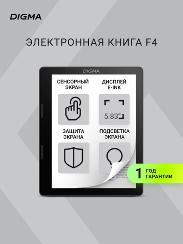 Электронная книга Digma F4 5.83" ОС Android, Wi-Fi, сенсорный экран, подсветка экрана