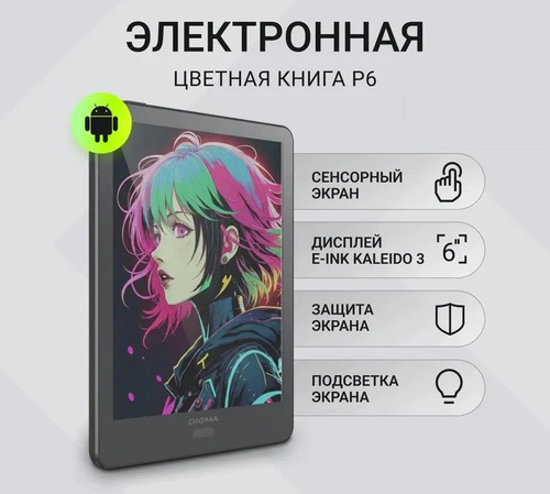 Электронная книга Dig P6 6" E-Ink Kaleido 3, цветная, сенсорная, Wi-Fi, BT. Товар уцененный