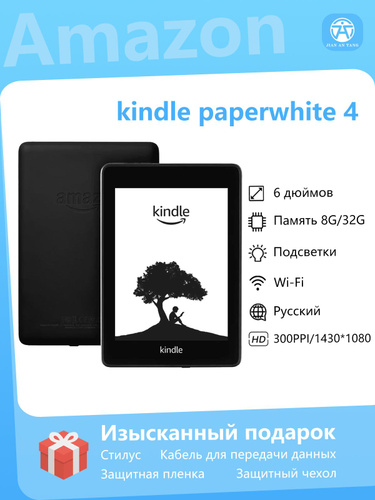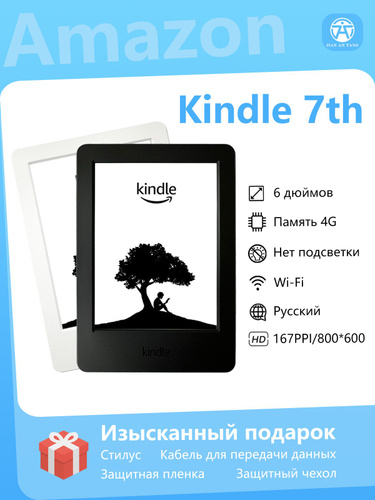Amazon 6" Электронная книга Amazon Kindle 7-го поколения 6 дюймов E-ink 4 ГБ поддерживает русский язык, белый, черный