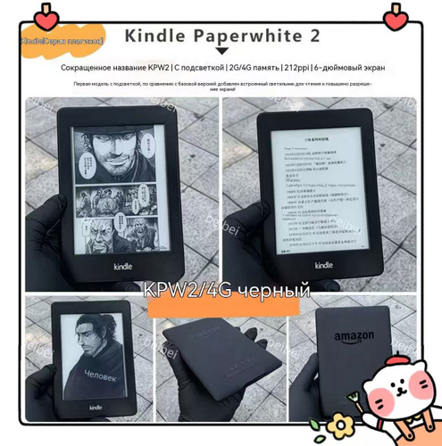 Amazon 6" Электронная книга Электронная книга Kindle Paperwhite 2 (6-го поколения), подсветка, русский, 212PPI, 2/4 ГБ, черный