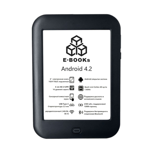 6" Электронная книга электронная книга/E-ink HD/ 16 ГБ/ Android4.2/ Русский/Подсветка/Суперэкономичная цена, черный