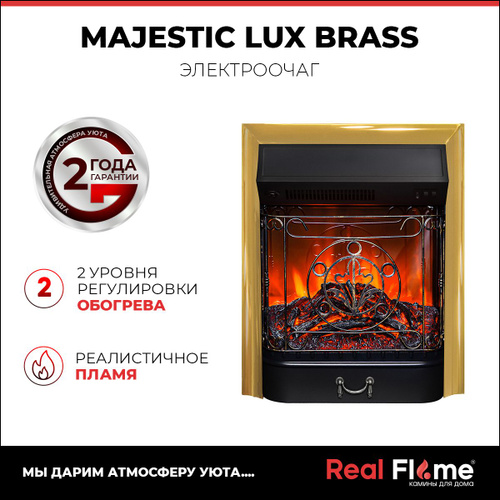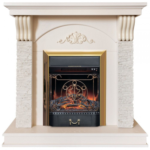 Электрокамин RealFlame Corfino WT с очагом Majestic Lux Brass