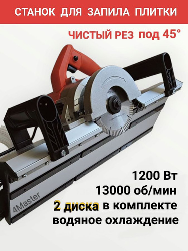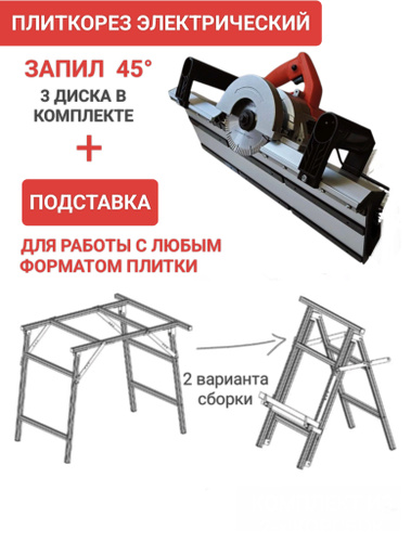Плиткорез + универсальная подставка для запила плитки под 45, заусовщик снятия фаски, три диска