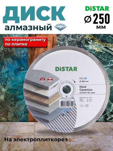 Дистар Диск алмазный 250х25,4х1,6 по плитке и керамограниту/ на электроплиткорез А03250