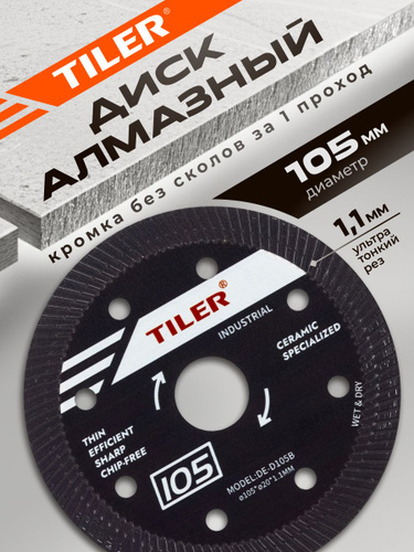 Диск алмазный по керамограниту для электрического плиткореза и УШМ Tiler 105х1,2х20мм, арт. 5004