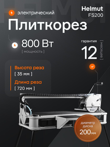 Плиткорез электрический водяной Helmut FSC200 для керамогранита. Мощность 1000 Вт. Длина стола 500 мм.
