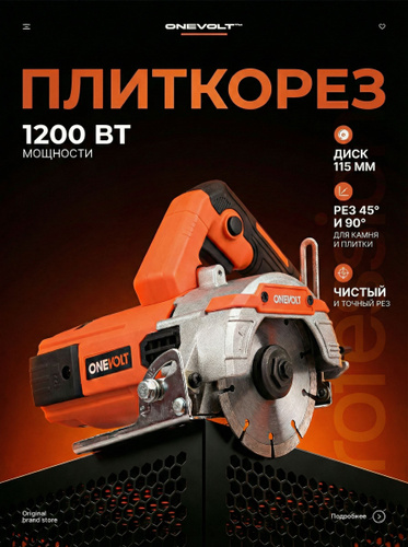 Плиткорез электрический по камню(плитке) VMC115-1 ONEVOLT 1200Вт,115мм,угол реза 45"/90"