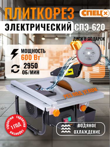 Плиткорез электрический СПЕЦ ПРОМО СПЭ-620 (600Вт, диск 180мм) + дополнительный алмазный диск в ПОДАРОК