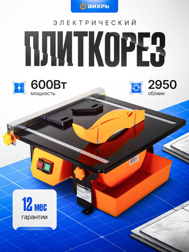 Плиткорез электрический ЭП-180 Вихрь (2950 об/мин, 600 Вт, диск 180 мм, водяное охлаждение)